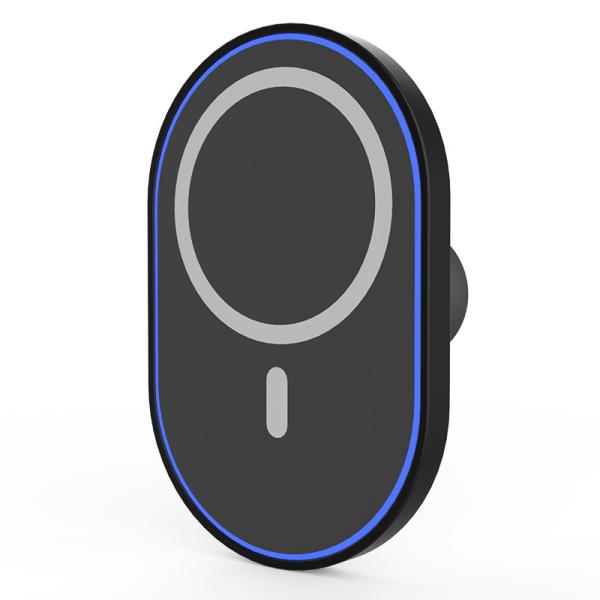 Oval Glass surface cover 15W strong magnetic wireless car charging pad with Air outlet clip design